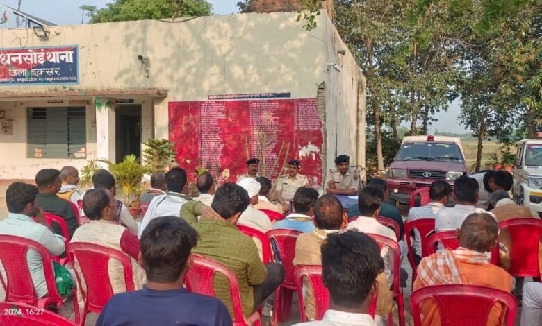 बीआरएन न्यूज, बक्सर।  जिले के धनसोई थाना के प्रांगण में शुक्रवार को होली पर्व को शांति समिति की बैठक का आयोजन किया गया। इस दौरान होली के त्योहार को शांतिपूर्ण ढंग से मनाने की अपील किया गया। तथा होली के त्योहार पर शराब का सेवन करने वालों व शराब का धंधा करने वालों के विरुद्ध सख्त करवाई के साथ सीधे जेल भेजने की बात कही गई। पुलिस पदाधिकारियों ने इसके लिए आमलोगों से सहयोग करने की बात कही। थानाध्यक्ष ज्ञान प्रकाश सिंह ने कहा कि होली का पर्व महान पर्व है। इसमें लोग एक दूसरे को रंग व गुलाल का प्रयोग करके खुशी मनाते हैं। उन्होंने कहा कि होली के दिन प्रशासन द्वारा शांति व्यवस्था कायम रखने के लिए काफी चुस्त दुरुस्त व्यवस्था की गई है। वही उन्होंने कहा कि आगामी लोकसभा चुनाव को लेकर आचार संहिता लागू हैं, इसलिए कही पर भी किसी भी व्यक्ति के द्वारा कानून का उल्लंघन को बर्दाश्त नहीं किया जाएगा। वही इस मौके पर एसआई चंचल महथा, बाला लखनदर सिंह, राजाराम दास, पूर्व उप प्रमुख धर्मेंद्र प्रसाद, समहुता मुखिया प्रतिनिधि राहुल उर्फ फैज अली, सुमन प्रसाद, मुखिया जगलाल चौधरी, अजय जायसवाल, सरपंच संतोष माली, जदयू नेता सुरेंद्र भगत, सामाजिक कार्यकर्ता बीरेंद्र सिंह, अवध बिहारी सिंह, दीप नारायण प्रसाद, संतोष भगवान सिंह, गोरखनाथ सिंह, चौकीदार अशोक सिंह, दीपक पासवान, श्रीभगवान पासवान सहित अन्य लोग उपस्थित रहे।