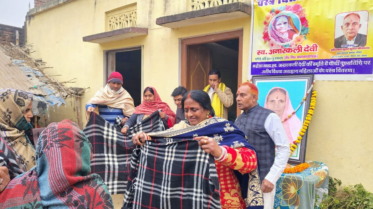 बीआरएन बक्सर।   भाजपा नेता व अधिवक्ता मंच के जिलाध्यक्ष एवं बिहार राज्य धार्मिक न्यास बोर्ड के लीगल एडवाइजर सुमन कुमार श्रीवास्तव ने अपनी माता स्वर्गीय अनारकली देवी की पांचवीं पुण्यतिथि के अवसर पर मानव सेवा का अनुकरणीय उदाहरण प्रस्तुत किया। इस अवसर पर उन्होंने पहले अपनी माता के तैलचित्र पर पुष्पांजलि अर्पित की, तत्पश्चात उनकी इच्छा के अनुरूप ग्राम चमिली में सैकड़ों गरीब, असहाय एवं विधवा महिलाओं के बीच गरम कपड़ों का निःशुल्क वितरण किया।