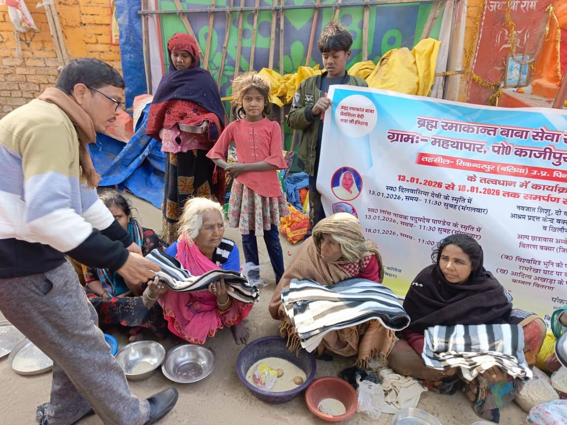 बीआरएन बक्सर। नगर के ऐतिहासिक एवं पावन स्थल रामरेखा घाट पर रविवार को ब्रह्म रमाकांत बाबा सेवा समिति ट्रस्ट के तत्वावधान में सेवा, सामाजिक समर्पण एवं जनकल्याण से जुड़ा कार्यक्रम आयोजित किया गया। कार्यक्रम का उद्देश्य समाज के जरूरतमंद वर्ग तक सहायता पहुँचाना और आपसी सहयोग व सौहार्द की भावना को सुदृढ़ करना रहा। इस अवसर पर ट्रस्ट की ओर से कंबल वितरण भी किया गया। कार्यक्रम स्थल पर ट्रस्ट के सचिव व प्रबंधक तथा किसान समाज पार्टी के बिहार संयोजक पंकज कुमार पाण्डेय मुख्य रूप से उपस्थित रहे। उन्होंने अपने संबोधन में कहा कि ब्रह्म रमाकांत बाबा सेवा समिति ट्रस्ट का मूल उद्देश्य समाज की अंतिम पंक्ति में खड़े व्यक्ति तक सेवा पहुँचाना है। धार्मिक एवं सामाजिक स्थलों पर सेवा कार्य करने से समाज में सकारात्मक संदेश जाता है और सामाजिक एकता मजबूत होती है।