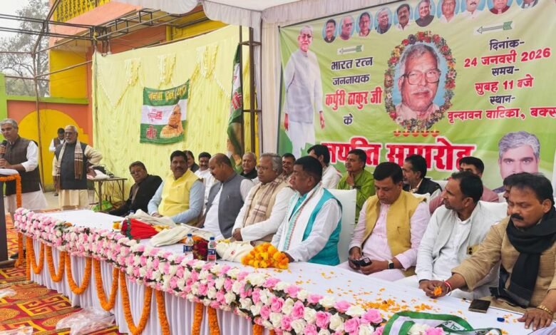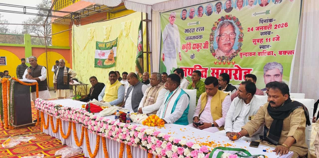डुमरांव विधायक राहुल कुमार सिंह ने कहा कि जननायक ठाकुर जी आज की राजनीति के लिए आदर्श हैं। उनके विचार और संघर्ष हम सभी के लिए प्रेरणा का स्रोत हैं, जिन्हें अपनाकर ही सच्चे लोकतंत्र की स्थापना संभव है।कार्यक्रम की अध्यक्षता करते हुए जदयू जिला अध्यक्ष अशोक कुमार सिंह ने कहा कि बिहार की लगभग सभी राजनीतिक पार्टियां और संगठन किसी न किसी रूप में जननायक ठाकुर जी के आदर्श, विचार और सिद्धांतों के इर्द-गिर्द ही अपनी राजनीति को आगे बढ़ाती हैं। जयंती समारोह में जिला बीस सूत्री सदस्य संजय सिंह राजनेता, जदयू जिला प्रवक्ता संतोष चौधरी, जदयू नेता धर्मेंद्र ठाकुर, विनोद ठाकुर, हीरालाल निषाद, सुरेश चौहान, राजेश कुशवाहा, रोहित ओझा, संतु पटेल, अभिषेक पटेल, मोहन चौधरी, संजय सिंह मझरिया, परशुराम तत्त्व, फूटीचंद कुशवाहा, अजय चंद्रा लोधी, दिनेश सिंह, विमलेंद्र कुमार, बबलू, लाल बहादुर महतो, दुर्गावती देवी, सत्य प्रकाश तिवारी, रमेश पासवान, जयप्रकाश चौधरी, भोला यादव, संदीप पंकज, मानसिंह, सत्यानंद कुशवाहा, निर्मल चौधरी, निर्मल पासवान, मंटू उपाध्याय, राघवेंद्र सत्येंद्र चौधरी सिंह, उत्तम तिवारी, छोटे सिंह, चेतेश्वर गोंड, विजय कुशवाहा, संदीप ठाकुर, कृष्ण सिंह, कमलेश गुप्ता, नित्यानंद द्विवेदी, बृजेश यादव, अरुण ओझा, संतोष मिश्रा, अरुण सिंह, हरेंद्र सिंह, मारकंडे पटेल सहित बड़ी संख्या में कार्यकर्ता एवं गणमान्य लोग उपस्थित रहे।समारोह का समापन जननायक कर्पूरी ठाकुर के चित्र पर माल्यार्पण एवं उनके आदर्शों को आत्मसात करने के संकल्प के साथ किया गया।