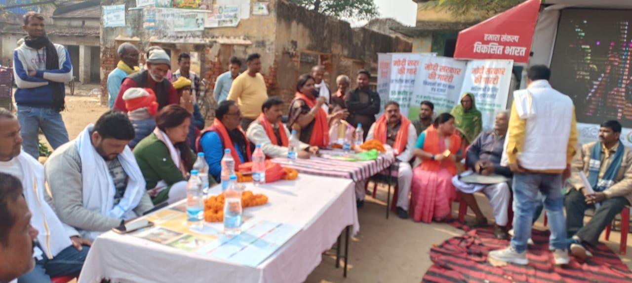 बता दें कि भारत सरकार द्वारा “विकसित भारत संकल्प यात्रा” देश भर में आयोजित की जा रही है जिसका उद्देश्य सरकार की प्रमुख जनकल्याणकारी योजनाओं को जमीन पर उतारना और उसमें परिपूर्णता हासिल करना है तथा इसके तहत यह सुनिश्चित किया जाना है की इन योजनाओं का लाभ सभी लाभार्थियों तक समयबद्ध तरीके से पहुंचे। कार्यक्रम के साथ-साथ चल रहे कृषि विज्ञान केंद्र के अधिकारी, नाबार्ड, बैंक के अधिकारी, स्वास्थ्य विभाग के अधिकारी एवं भारतीय खाद्य निगम के अधिकारी राजकुमार ने अपने-अपने विभाग में भारत सरकार द्वारा चलाई जा रही जनहितकारी योजनाओं के बारे में मौके पर मौजूद लोगों को जानकारी दी। मोदी की गारंटी वाली गाड़ी को देखकर लोगों में खासा उत्साह देखा गया और कार्यक्रम में उपस्थित लोगों ने मोदी में आस्था व्यक्त किया।कार्यक्रम में भारतीय जनता पार्टी के जिला अध्यक्ष विजय कुमार सिंह उर्फ भोला सिंह,पूर्व जिला अध्यक्ष रामकुमार सिंह, लोकसभा संयोजक राजवंश सिंह, कार्यक्रम संयोजक मीना सिंह कुशवाहा, जिला प्रभारी संतोष पटेल, बिन्धयाचल पाठक, निर्भय राय,पूनम रविदास, ईदु देवी, नवीन राय,पिंकी पाठक, नवीन निश्चल चतुर्वेदी,दुर्गावती चतुर्वेदी,कोरानसराय मंडल अध्यक्ष धर्मेंद्र पांडेय, डुमरांव मंडल अध्यक्ष बबलु पाठक, अखिलेश मिश्रा, राहुल जी, रजनीश पांडेय, अगस्त उपाध्याय,सुनील कुमार सहित दर्जनों कार्यकर्ता मौजूद रहे।