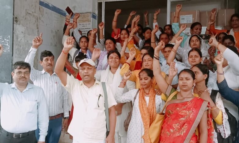 बीआरएन बक्सर। बिहार संविदा ए एन एम संघर्ष मोर्चा गोप गुट जिला शाखा बक्सर के बैनर तले समान काम समान वेतन लागु करने,एन एम एस कर्मियों के लिए H R M S -FRAS (Face Recognition Attendance Stem) के में जिला भर की संविदा ए एन एम/जी एन एम ने सिविल सर्जन बक्सर के समक्ष रोष पूर्ण प्रदर्शन किया एवं मांग पत्र सौंपा। ज्ञात हो कि उपरोक्त मांगों को लेकर बिहार संविदा ए एन एम संघर्ष मोर्चा 08 जुलाई से अनिश्चितकालीन हड़ताल पर है। प्रदर्शन को संबोधित करते हुए नेताओं ने कहा कि जब तक बिहार सरकार हमारी मांगे नहीं मानती तब तक हड़ताल जारी रहेगी। नेताओं ने कहा कि सरकार द्वारा हम संविदा कर्मियों के साथ सौतेला व्यवहार कर रही है। सिर्फ हम संविदा कर्मियों को ही उपस्थिति बनाने के लिए FRAS लागु किया जा रहा है , जबकि हम संविदा कर्मी अल्प वेतन भोगी है। बहुत सारे स्वास्थ्य केंद्र/स्वास्थ्य उपकेंद्र काफी सुदूर ग्रामीण क्षेत्रों में अवस्थित हैं जहां पर प्रायः मोबाइल नेटवर्क नहीं रहता है एवं यातायात की भी कोई बेहतर सुविधा उपलब्ध नहीं है।ऐसी परिस्थिति में हम एन एच एम कर्मियों को काफी आर्थिक एवं मानसिक कठिनाईयों का सामना करना पड़ रहा है जिससे हम तमाम लोग काफी डरे एवं सहमें हुए हैं। प्रदर्शन को बिहार राज्य अराजपत्रित कर्मचारी महासंघ गोप गुट के जिला अध्यक्ष लव कुश सिंह, जिला सचिव महेंद्र प्रसाद, कोषाध्यक्ष प्रेम चंद्र चक्रवर्ती, चिकित्सा संघ के जिला अध्यक्ष दीपक कुमार रज्जक, संविदा ए एन एम संघर्ष मोर्चा की जिला अध्यक्ष ममता कुमारी और जिला सचिव सरिता कुमारी ने संशोधित किया। प्रदर्शन में मुनी कुमारी, अंशु कुमारी,किरण कुमारी, अनुपमा कुमारी, रीता कुमारी, सविता कुमारी, सुनीता कुमारी बिन्नी कुमारी, प्रियंका कुमारी, मीरा कुमारी , अनिता कुमारी, सुनीता कुमारी , सुमन कुमारी , रानी कुमारी, अमृता कुमारी , रेखा कुमारी शांति कुमारी सहित बड़ी संख्या में संविदा कर्मी उपस्थित थी।