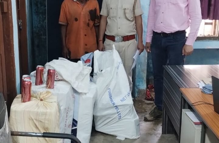 गिरफ्तार शराब कारोबारी के साथ उत्पाद पुलिस