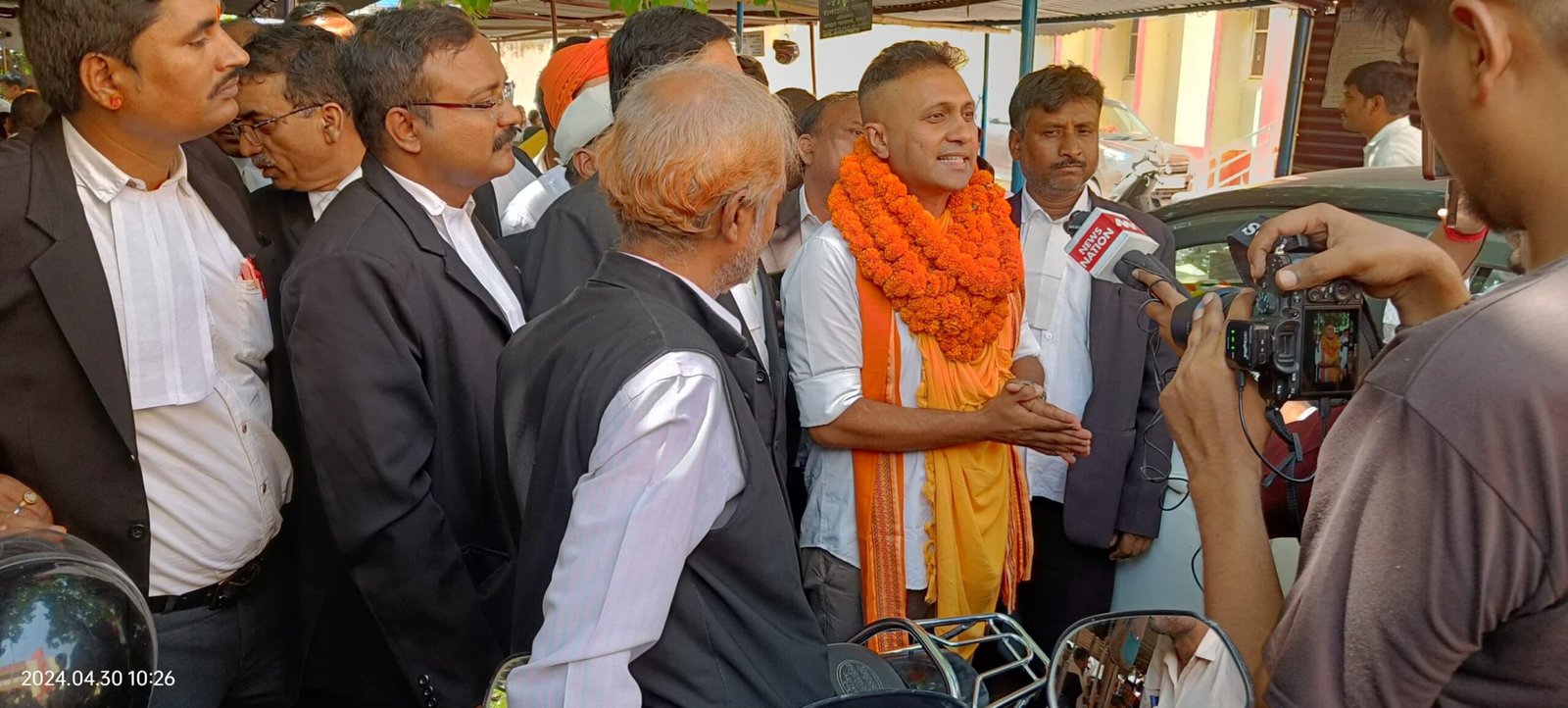 बीआरएन बक्सर। बक्सर लोकसभा से निर्दलीय ताल ठोकने की पूर्णतः तैयारी कर चुके पूर्व आइपीएस आनंद मिश्रा का ताबडतोड संपर्क अभियान जारी है । इसी क्रम मे वह मंगलवार को बक्सर न्यायालय परिसर मे पहुंचकर अधिवक्ताओं से मुलाकात किये। अधिवक्ताओं से मुलाकात के दरम्यान श्री मिश्रा ने जनता के उम्मीदों पर खरा उतरने की बात की । उन्होंने अपने को बक्सर की जनता का प्रत्याशी बताते हुए कहा कि जनता स्वयं चुनाव लड़ रही है। विपक्षी उम्मीदवारों पर तंज कसते हुए श्री मिश्रा ने कहा कि नेता चुनाव अपने दम पर लड़ता है न कि किसी और के नाम पर।