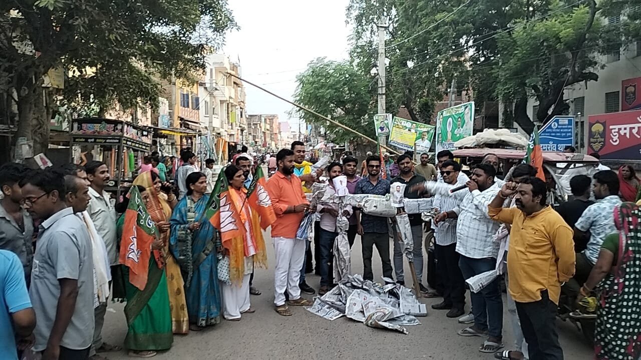 बीआरएन बक्सर। डुमरांव अनुमंडल के नया थाना क्षेत्र में कांग्रेस और राजद नेताओं द्वारा प्रधानमंत्री नरेंद्र मोदी की स्वर्गीय माताजी पर की गई अभद्र टिप्पणी के विरोध में युवा भाजपा नेताओं और कार्यकर्ताओं ने जोरदार प्रदर्शन किया। इस दौरान राहुल गांधी और तेजस्वी यादव का पुतला दहन कर कड़ा विरोध जताया गया।कार्यक्रम का नेतृत्व युवा भाजपा नेता दीपक यादव ने किया, जबकि अध्यक्षता छात्र नेता संटू मित्रा ने की। दीपक यादव ने कहा कि यह न केवल राजनीति का स्तर गिरने का उदाहरण है, बल्कि भारतीय संस्कृति और मातृशक्ति के सम्मान पर सीधा प्रहार है। उन्होंने कहा, “पहले बिहार का अपमान और अब प्रधानमंत्री जी की माताजी को लेकर अभद्र टिप्पणी कांग्रेस और राजद के मानसिक दिवालियेपन को दर्शाती है।”सभा में मौजूद कार्यकर्ताओं ने नारे लगाए – “माँ का अपमान, नहीं सहेगा हिन्दुस्तान!”, “महागठबंधन शर्म करो, बिहार छोड़कर भागो!”, और “बिहार की धरती पर नहीं चलेगा, माँ का अपमान करने वाला!”